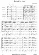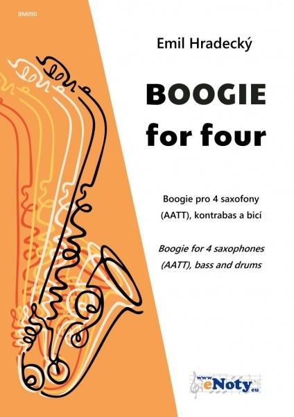 Emil Hradecký (*1953) je jedným z významných českých skladateľov, ktorí sa vo svojej tvorbe často inšpirujú tanečnou hudbou a jazzom. Tento titul Vám ponúka skladbu Boogie for four (Boogie pre štyroch) v úprave pre štyri saxofóny (AATT), kontrabas alebo basovú gitaru a bicie. Zošit obsahuje partitúru plus samostatne vložené party pre jednotlivé nástroje. Násluch, ktorý tu môžete počuť je ukážka skladby, ako ju prehral notačný program v ktorom bola skladba napísaná. Titul je vydaný aj v úprave pre štyri klarinety (kod: BM091) a oba tituly je možné vzájomne kombinovať. Môžete si tak zahrať toto podarené boogie v akejkoľvek kombinácii klarinetov a saxofónov.