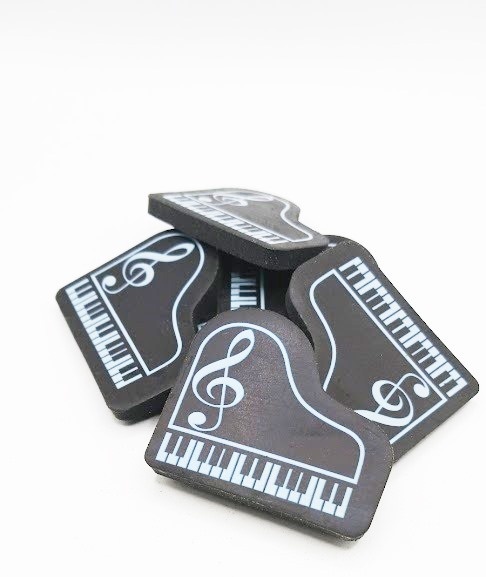 Čierna guma klavír s potlačou klaviatúry je skvelým doplnkom pre každého hudobného nadšenca. Tento elegantný a štýlový dizajn vám pripomenie hudbu aj počas vášho pracovného dňa. S jemným povrchom a precíznou potlačou klaviatúry sa jedná o ideálny doplnok do vašej kancelárie alebo školskej tašky. Navyše čierna farba klavíra dodáva tomuto gumovému predmetu šmrnc a elegancia. Veľkosť: 40x35 mm