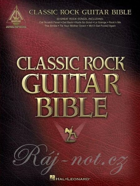 Titul z úspešnej série GUITAR BIBLE, ktorý obsahuje 33 skvelých klasických rockových hitov v bežnom gitarovom aranžmáne - melodická linka s textom, akordové značky a tabulatúra.