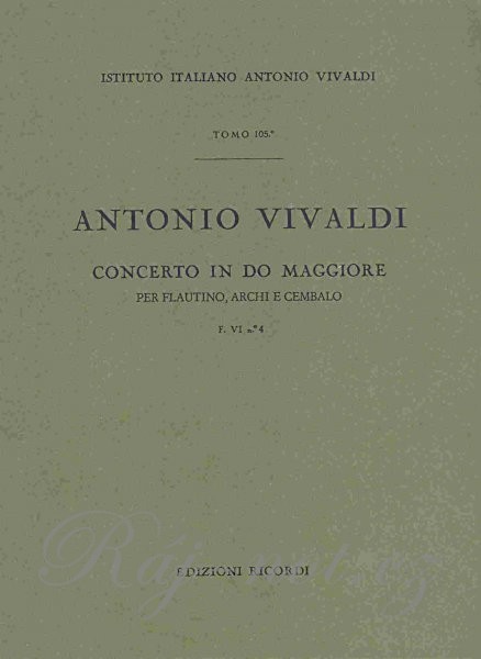 Antonio Vivaldi (1678 - 1741), koncert C dur, RV443 pre flute, sláčikový súbor (violín I a II, viola, violončelo, kontrabas) a čembalo. Počet strán: 34Počet skladieb: 1