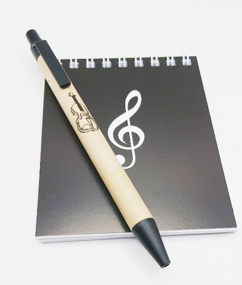Darčekový balíček - čierny bloček husľový kľúč a pero husle