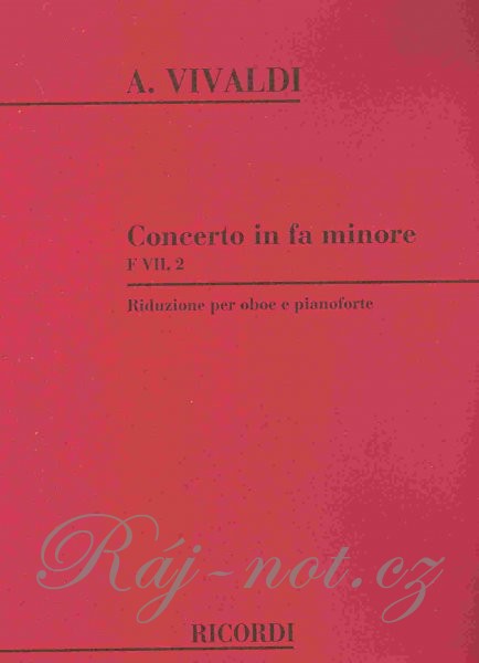Antonio Vivaldi (1678 – 1741), koncert F dur (RV 455) v úprave pre hoboj so sprievodom klavíra. Zošit obsahuje klavírny part vrátane melodickej linky pre sólový nástroj a samostatný part pre sólový nástroj. Vhodné aj pre akýkoľvek nástroj v C ladenie.