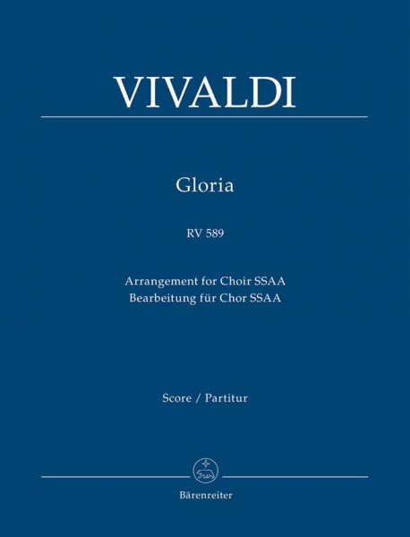 „Gloria“ RV 589 je dnes jednou z najpopulárnejších Vivaldiho skladieb a jedným z najpravidelnejšie uvádzaných duchovných vokálnych diel z éry baroka. Dielo bolo so všetkou pravdepodobnosťou skomponované okolo roku 1716 počas Vivaldiho pôsobenia v Ospedale della Piet, sirotinci pre dievčatá v Benátkach. Hoci bola Vivaldiho „Gloria“ (BA 8953) napísaná pre sólové hlasy a zmiešaný zbor, je pravdepodobné, že bola vystupoval v dievčenskom sirotinci iba so ženskými hlasmi. Keď to vezmeme do úvahy, starostlivý aranžmán Malcolma Bruna pre zbor SSAA má určitý význam. Dielo v úprave pre ženské hlasy alebo detský zbor zostáva skutočným majstrovským dielom. „Kýria“ RV 587 (BA 8954) pre dva zbory a dva sláčikové súbory, ako je tu usporiadané pre ženský zbor, má svoje čaro. Možno ju hrať spoločne s Gloriou ako typ krátkej omše. Obe aranžmány vychádzajú z nedávno vydaných urtextových vydaní týchto diel. Klavírne redukcie od editora Malcolma Bruna sa ľahko hrajú a zachovávajú charakter diel. SATB verziu.