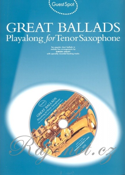 Zošit série Guest Spot, ktorá Vám ponúka Vaše obľúbené melódie s podareným sprievodom na priloženom CD. V zošite je tiež veľmi pekne spracovaný popis nástroja a prstoklad pre nástroj, pre ktorý je titul vydaný. Na priloženom CD sú všetky skladby nahrané 2x, v plnom znení a iba doprovod pre Vašu hru. Tento titul Vám ponúka 10 krásnych balád v úprave pre tenorový saxofón.