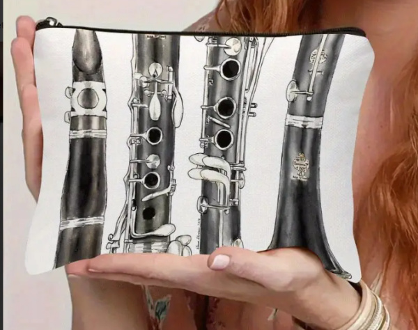 Táto elegantná kozmetická taška je dokonalým doplnkom pre každého klarinetistu, hudobného pedagóga alebo milovníka hudby, ktorý chce mať svoje drobnosti vždy perfektne usporiadané. Hlavné vlastnosti: Originálna potlač: Nádherný motív klarinetu decentne zdôrazní vašu hudobnú vášeň. písacie potreby, ladičku, náhradné plátky alebo malé osobné predmety. Skvele sa zmestí do kabelky, batohu aj puzdra na nástroj. Všestranné použitie: Vhodná ako kozmetická taška, peračník, taštička na cennosti alebo organizér do tašky. Kvalitné spracovanie: Pevný materiál a spoľahlivý zips pre dlhú životnosť.
