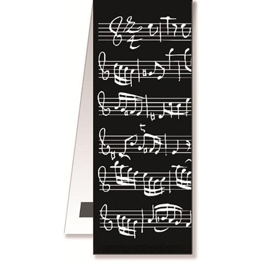 Magnetická záložka s čiernym notovým dizajnom určite poteší všetkých čitateľov. Záložka s rozmermi 4,5 x 10,5 cm sa prichytáva pomocou dvoch magnetov do knihy na poslednú prečítanú stránku.