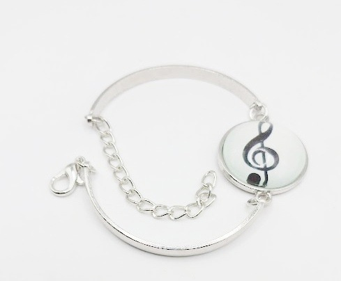Náramok na ruku - husľový kľúč je skvelým módnym doplnkom pre všetkých milovníkov hudby. Tento jedinečný náramok sa vyznačuje nielen svojim atraktívnym dizajnom, ale aj praktickou funkcionalitou. Je vybavený nastaviteľnou retiazkou na konci, vďaka ktorej si ho môžete pohodlne prispôsobiť svojej veľkosti zápästia. Či už ho nosíte na koncert, do školy alebo ako súčasť každodenného štýlu, tento náramok určite upúta pozornosť a podčiarkne vašu osobnosť.
