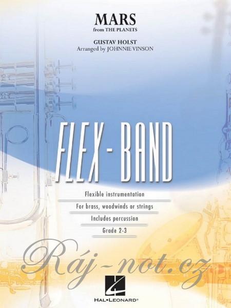 Titul z úspešnej a variabilnej série FLEX-BAND, ktorá je aranžovaná pre všetky hudobné súbory a orchestre, ktoré nemajú stále nástrojové obsadenie a potrebujú byť "flexibilné", potrebujú mať možnosť prestavať hudobný súbor alebo orchester podľa okamžitej situácie a mať pre všetky pripravené hotové party . Titul obsahuje partitúru vrátane všetkých rozpísaných partov. Všetky tituly tejto série sú napísané v päťhlasovom aranžmáne plus percussions a každý z týchto piatich hlasov je rozpísaný pre niekoľko rôznych nástrojov alebo ladenie a je iba na Vás, ktorý z nástrojov, ktoré máte k dispozícii obsadíte pre ktorý hlas. Veľmi variabilná séria použiteľná pre väčšinu hudobných súborov. Tento titul Vám ponúka skladbu MARS z orchestrálnej suity PLANETY, ktorú zložil anglický neskoro romantický hudobný skladateľ a hudobný pedagóg Gustav Theodore Holst (1874 – 1934). Dĺžka skladby cca 2:00 minúty