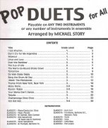 Zošit z úspešnej a teraz novo revidovanej a upravenej série POP DUETS for all, kde každý zošit tejto série obsahuje výber známych evergreenov v úprave pre dva nástroje rovnakého ladenia so stúpajúcou obtiažnosťou jednotlivých skladieb (obtiažnosť 1 - 4). Všetky zošity tejto série je možné medzi sebou vzájomne kombinovať a môžete tak vytvoriť hudobný súbor iba z nástrojov, ktoré máte k dispozícii av ktorom môžu hrať každý hlas iné nástroje. Podarená a veľmi variabilná séria.Počet strán: 24Počet skladieb: 18Aranžér: Story, Michael