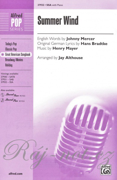Frank Sinatra, Wayne Newton, Michael Bublé a mnoho ďalších spievalo pieseň Summer Wind (Slnečný vietor), krásny americký štandard. Teraz Vám túto skladbu ponúkame v podarenom swingovom aranžmáne pre SSA vokálny súbor so skvelou pasážou pre scat. Klavírny sprievod vrátane akordových značiek.